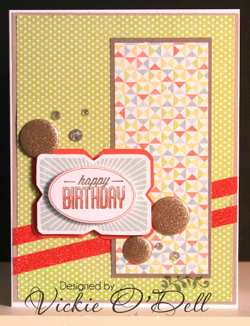 This second card also uses those colors plus Coral glitter tape and gold glitter brads so it doesn't really qualify for the previous challenge.
